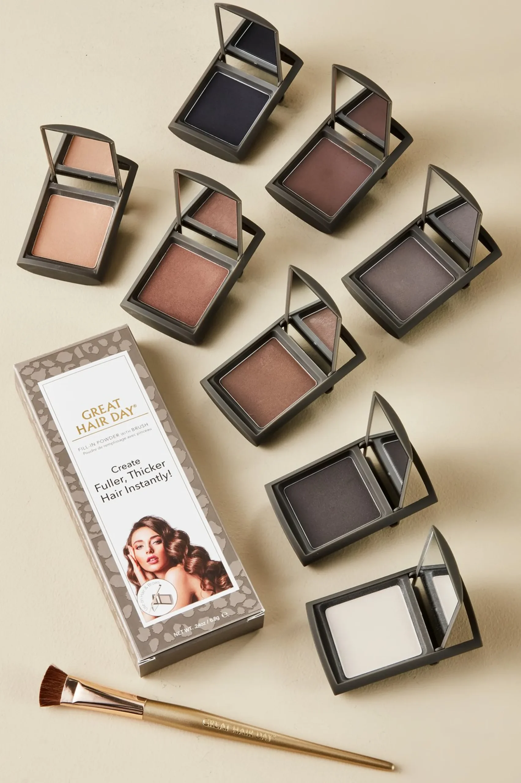 Brush it on to put roots (and thin spots) beautifully undercover. Created by Joan Rivers to hide imperfections in-between stylist visits. No-budge, no-transfer, easily applied with custom brush. 0.24 oz. In mirrored compact.