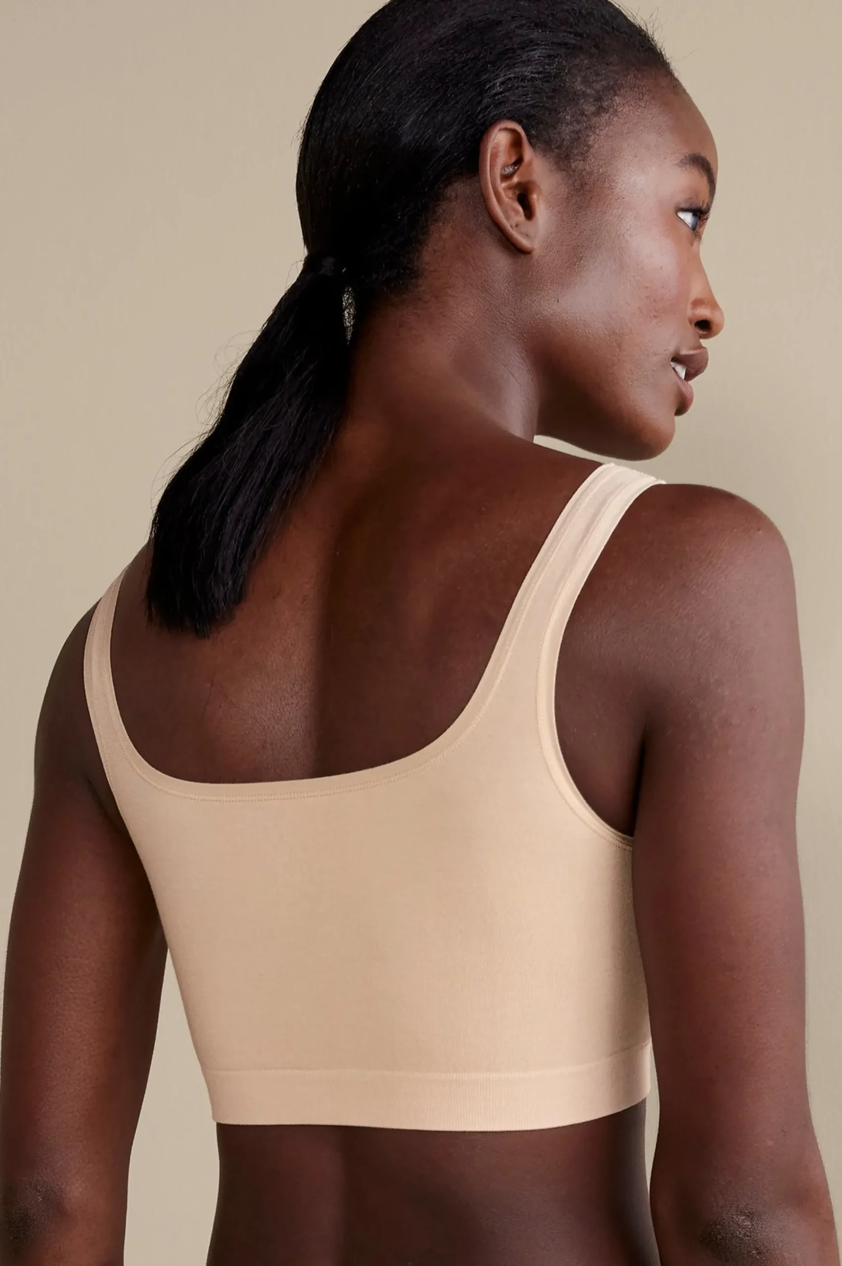 You’ll want to live in this tank-style bralette, it’s so comfy. Super-soft Outlast® blended with viscose feels amazing against your skin. Wide, no-dig straps plus wide back and sides gently smooth your shape. Removable pads make it a perfect choice for yoga, lounging, napping or all-day (or night) wear. Innovative temperature control technology keeps your body heat expertly regulated to warm you when you’re chilly or cool you when you’re too hot. Step in or pull over head.
