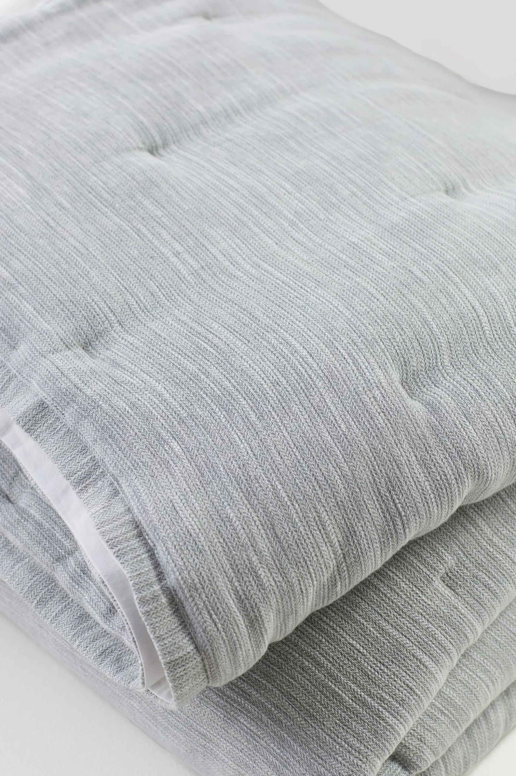 This deliciously textured linen/cotton comforter invites sweet dreams in a silver sea, ribbed linen and cotton blend that reverses to a silky, 400-thread count cotton sateen in white.