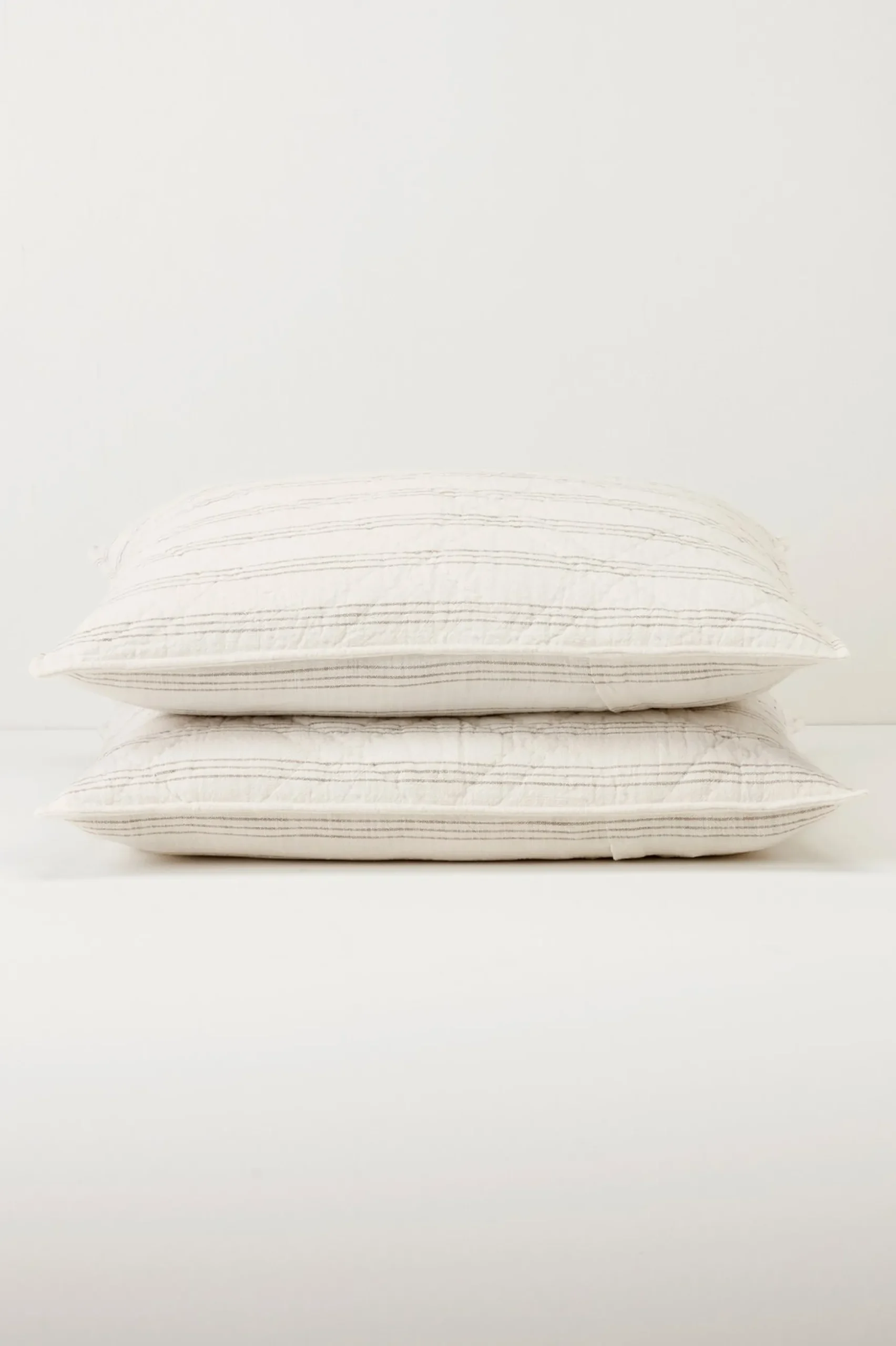 Oatmeal striping adds a whisper of detail on this soft cotton pillow sham. It’s a lovely spot of light in your bedroom design.