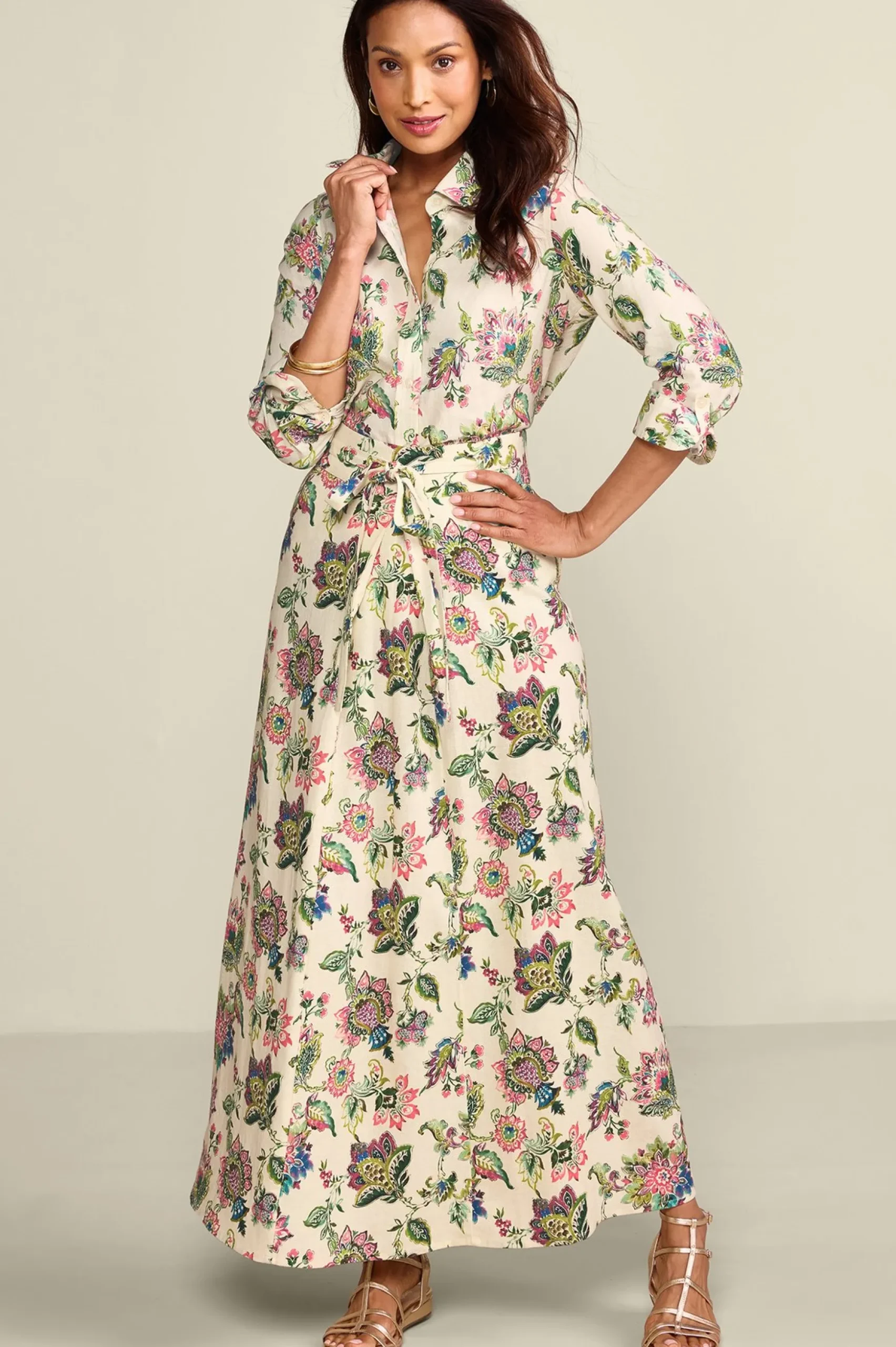 A warm-weather wardrobe must-have, this classic collared button-down is made from a lightweight linen blend. Its long sleeves can be rolled up and secured with the attached tabs. Toss it on with shorts, denim, or breezy wide-leg pants for an effortless ensemble.